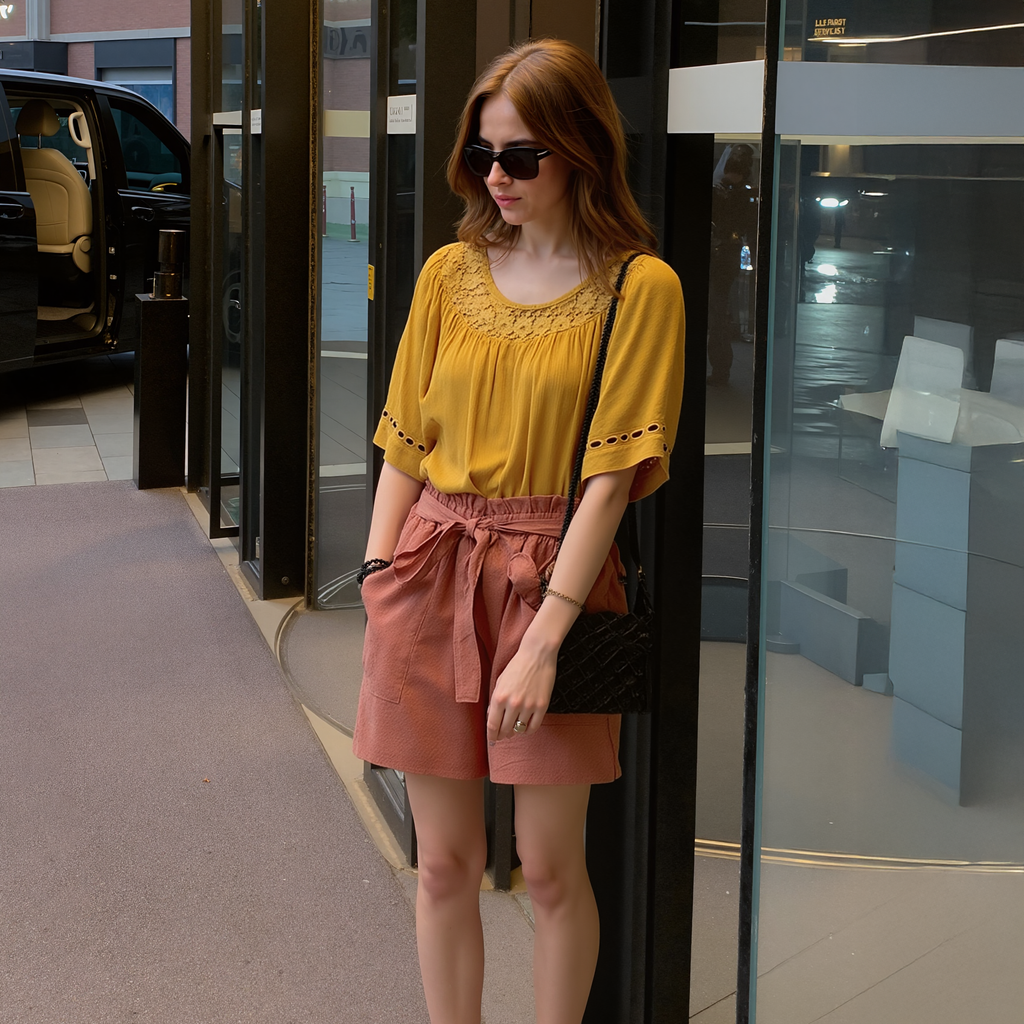 Equipped with two slanted pockets, a gathered elastic waistband, and a self-tie belt, these Pleione shorts offer both practicality and a flattering high-waist silhouette. Hand wash cold separately.