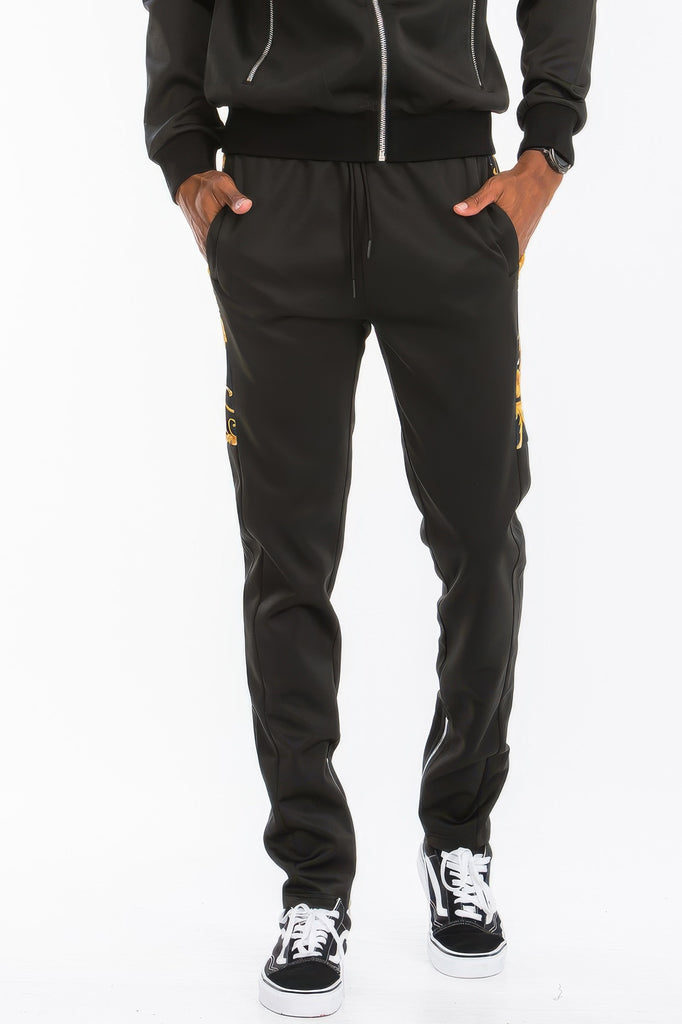 This track suit offers a combination of sleek design and practical features, including the full-zip hoodie, ankle zippers, and handy pockets. The fabric's flexibility ensures both style and comfort, making it perfect for an active lifestyle.