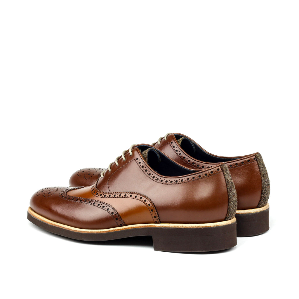 Augustus C - Unique Handcrafted Coffee Brown Brogue Classic Oxford W/ Brown Heeled Rubber Sole by Le Ruux