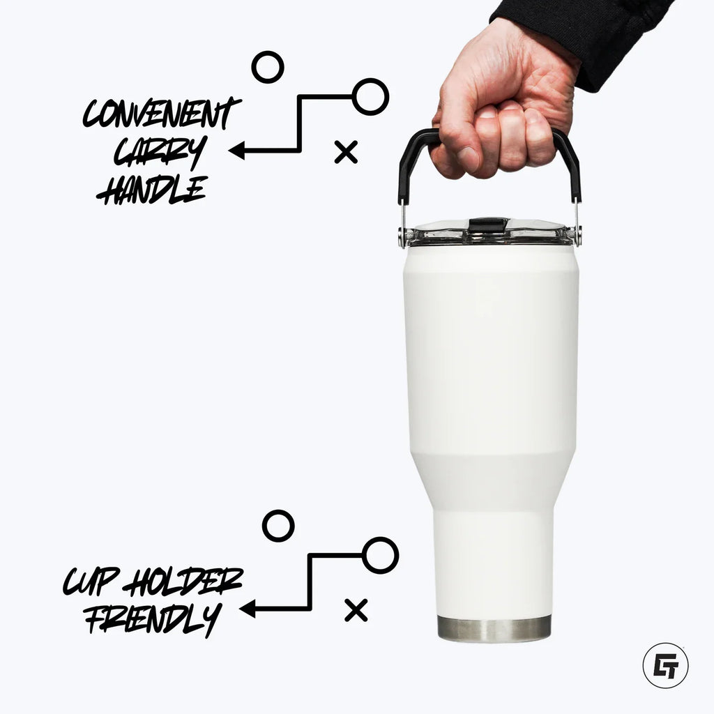 The Tennessee Volunteers 40oz Carry Tumbler keeps drinks hot or cold and features a spill-resistant lid and carry handle. Its durable design and official branding make it perfect for fans on the go.