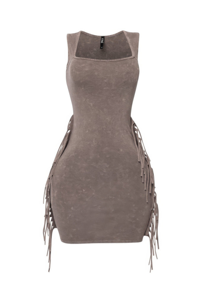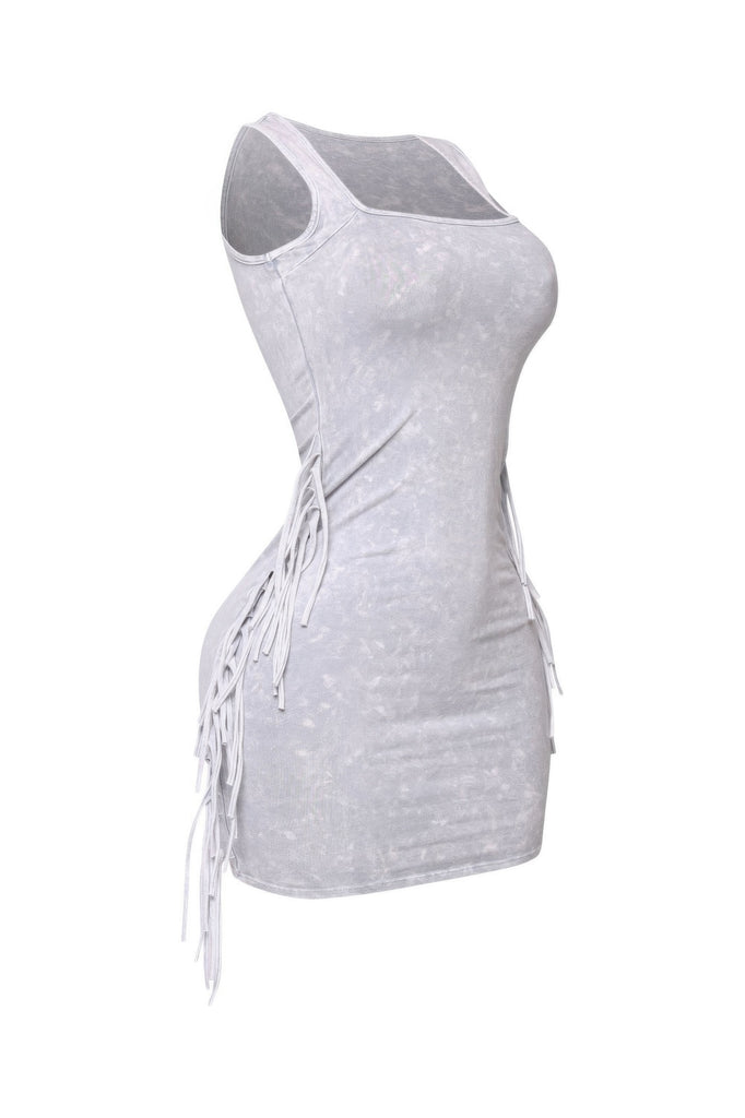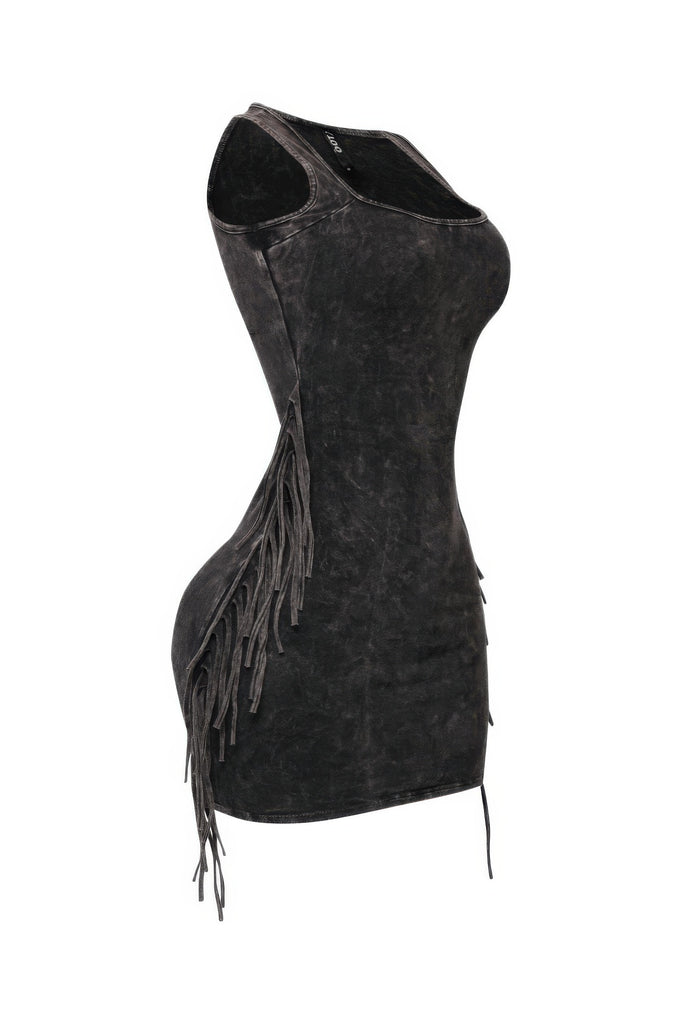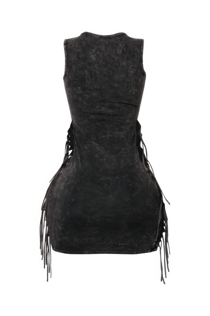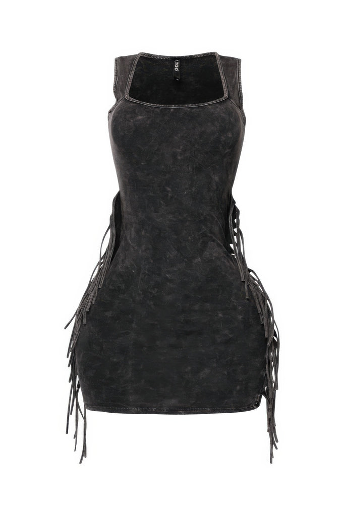 Mineral Washed Side Fringe Mini Dress