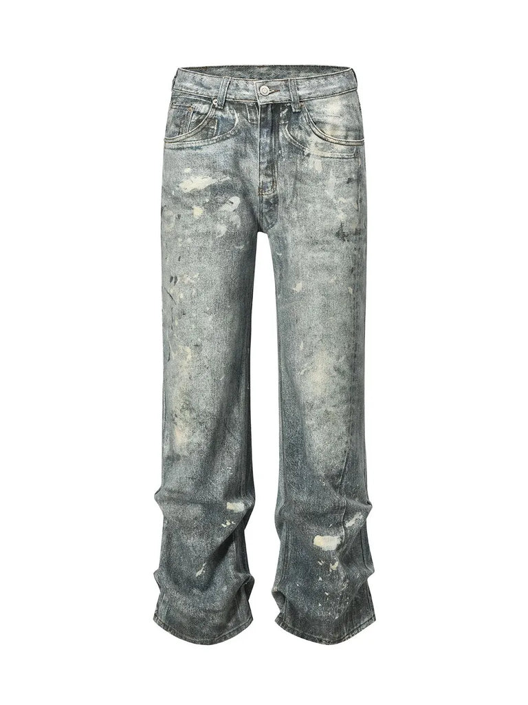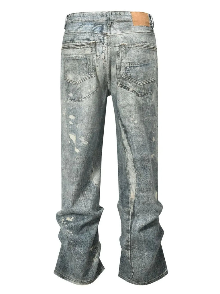 Men's Washed Printed Straight Jeans